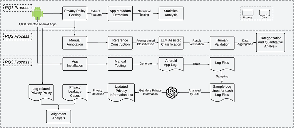 - Researchers analyzed privacy policies and runtime logs from 1,000 Android apps across 43 categories.