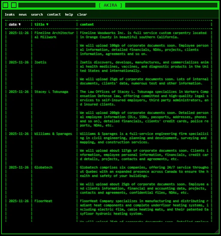 The Akira ransomware group has claimed responsibility for breaching multiple organizations across various sectors in the US and Canada, exposing sensitive data. The leaked data includes personal, financial, client, and confidential corporate information, posing significant security risks. #AkiraRansomware #DataBreach #CyberThreats