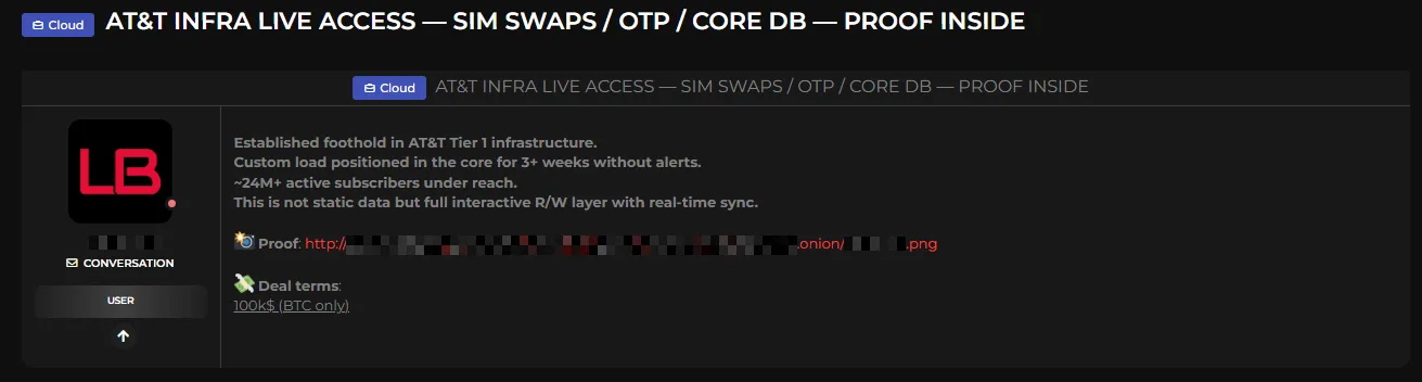 - The attacker is offering real-time, interactive database access for $100,000 Bitcoin.