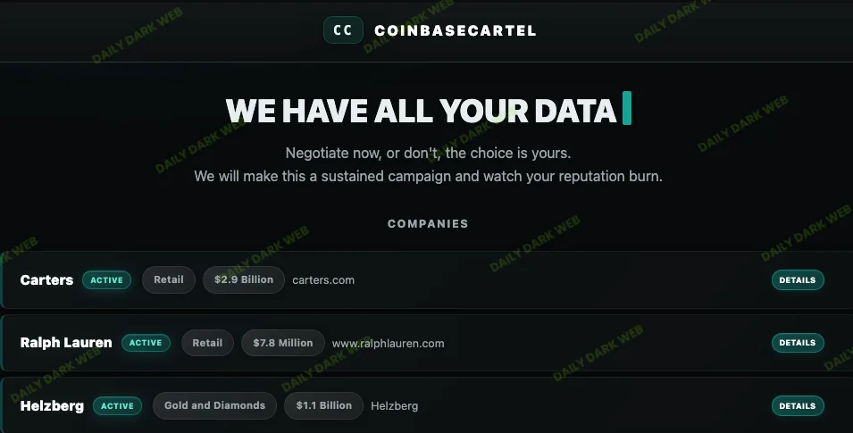 Read More: https://dailydarkweb.net/coinbasecartel-breaches-carters-ralph-lauren-helzberg/