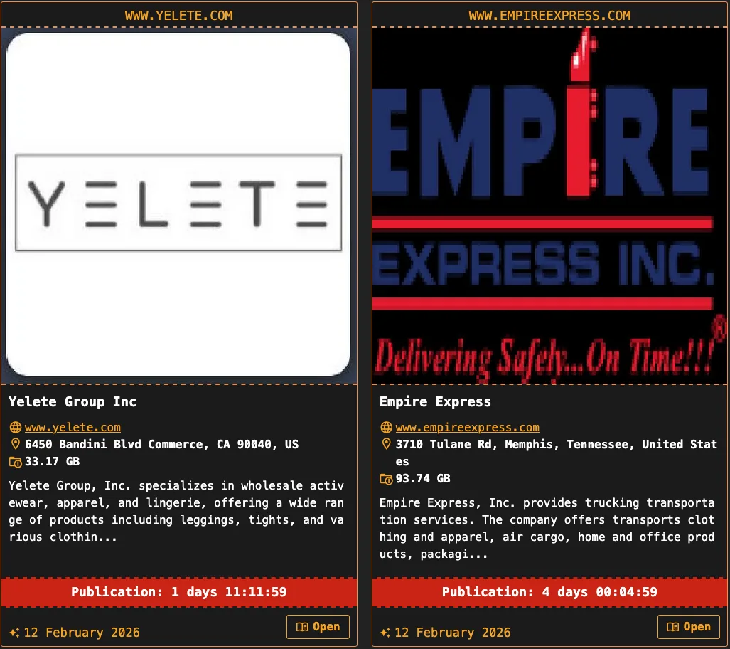 The Dragonforce ransomware group has claimed responsibility for breaching two U.S. companies, posting Yelete Group Inc and Empire Express on its leak site and threatening to publish stolen data. The actor says it exfiltrated approximately 33.17 GB from Yelete Group Inc and 93.74 GB from Empire Express, including internal company documents and records. #Dragonforce #YeleteGroupInc #EmpireExpress