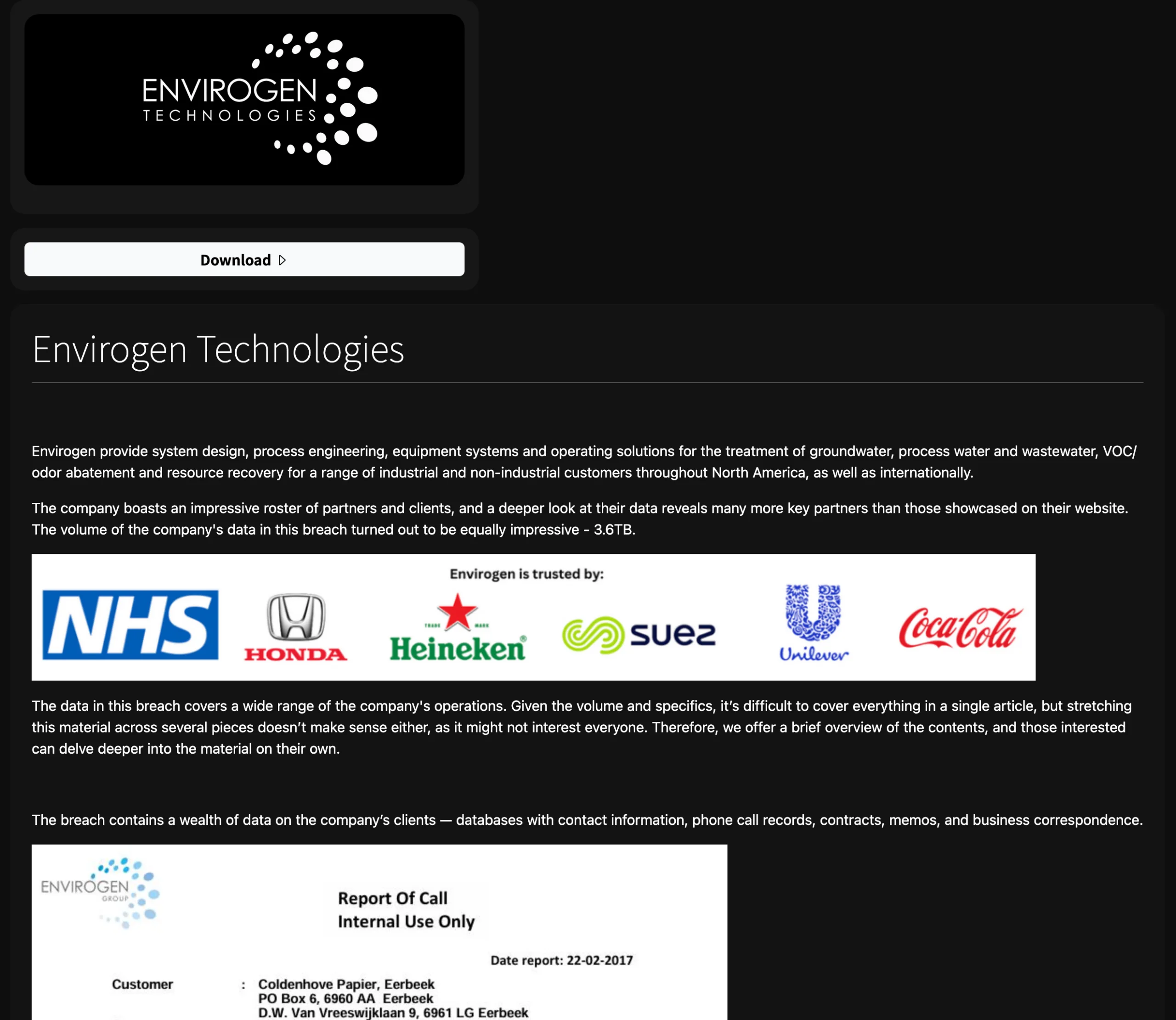 - Anubis claims to have breached Envirogen Technologies.