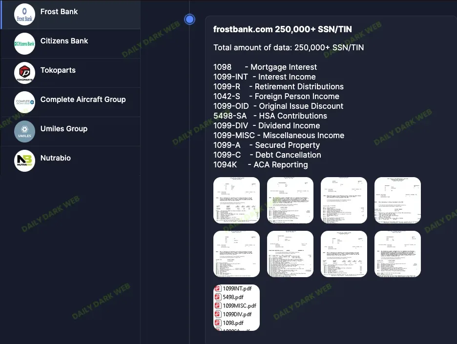The Everest ransomware group claims to have breached multiple organizations across the financial, aviation, automotive, and retail sectors and has posted large troves of highly sensitive corporate and customer data on its extortion portal with active countdowns to public release. Alleged victims include Frost Bank, Citizens Bank, Tokoparts, Complete Aircraft Group, Umiles Group, and Nutrabio, with the actor claiming over 380 GB of dataβreportedly including 250,000+ SSNs/TINs, 3.4 million banking records, unencrypted credit card details, aviation maintenance files, and complete email archives. #EverestRansomware #FrostBank