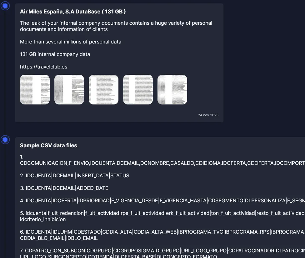 The Everest ransomware group claims to have breached Air Miles España and threatens to leak 131 GB of stolen customer data. The compromised information includes personal details, CRM data, and internal documents, posing significant privacy risks. #EverestRansomware #AirMilesEspaña #TravelClub #DataLeak