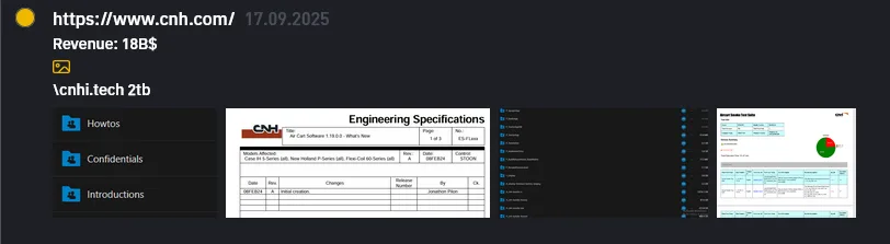 CNH Industrial has become the victim of a ransomware attack by a notorious group, resulting in the theft of 2 terabytes of sensitive data. This breach could lead to significant intellectual property loss and operational disruptions for the company. #ContiRansomware #CNHI #DataLeak