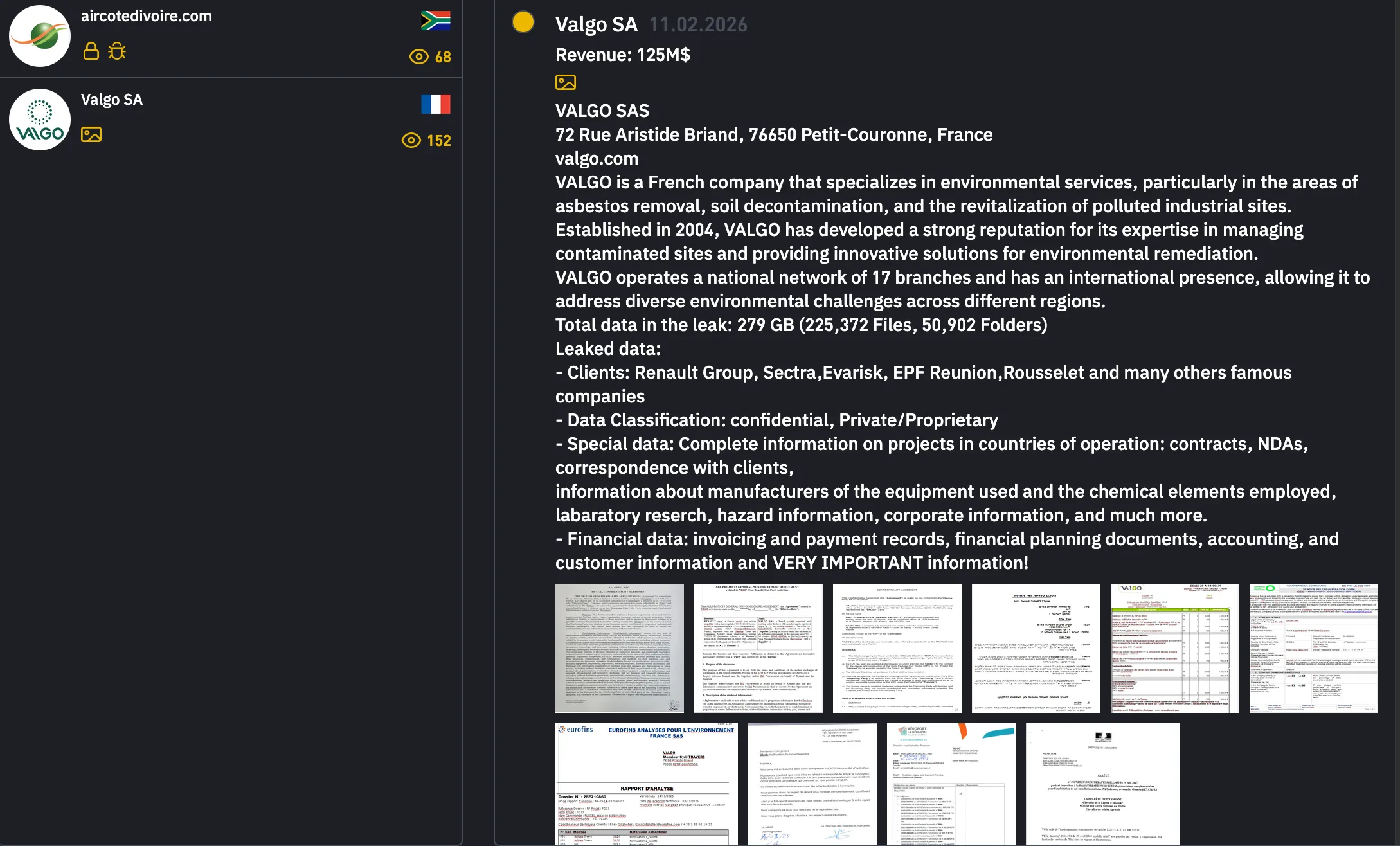 - The alleged Valgo SA data leak reportedly contains confidential client details involving Renault Group, Sectra, Evarisk, EPF Reunion, and Rousselet.