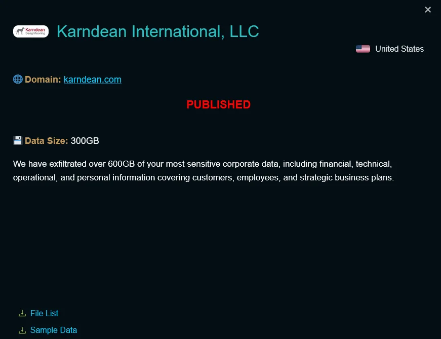 Karndean International, LLC, a leading luxury vinyl flooring supplier, was targeted in a significant cyberattack by the ransomware group Crypto24. The breach involved the exfiltration and partial leak of over 600GB of sensitive data, including financial, technical, and personal information. #Crypto24 #DataBreaches #KarndeanInternational #Ransomware