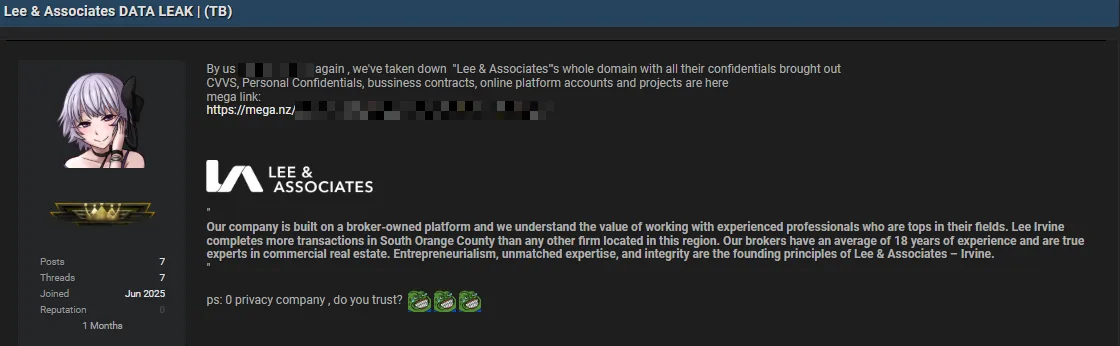 Lee & Associates Allegedly Hit by Major Data Leak – Confidential Files Exposed
