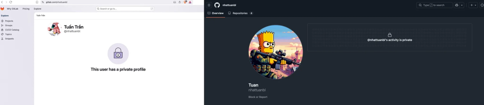 - [Code repository profiles ] Author profiles – https://gitlab[.]com/nhattuanbl, https://github[.]com/nhattuanbl (profiles associated with the account).