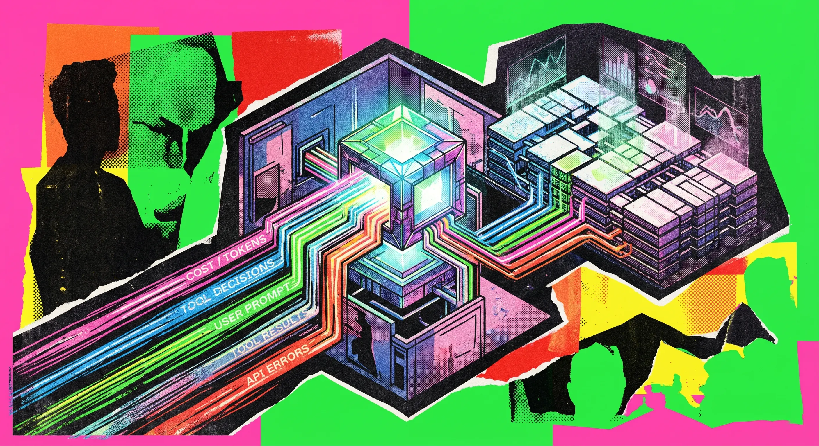 • Custom Elasticsearch component and index templates plus an ingest pipeline convert OTel attributes to correct numeric/boolean types and parse JSON-encoded tool_parameters/tool_input into flattened fields for querying and aggregation.